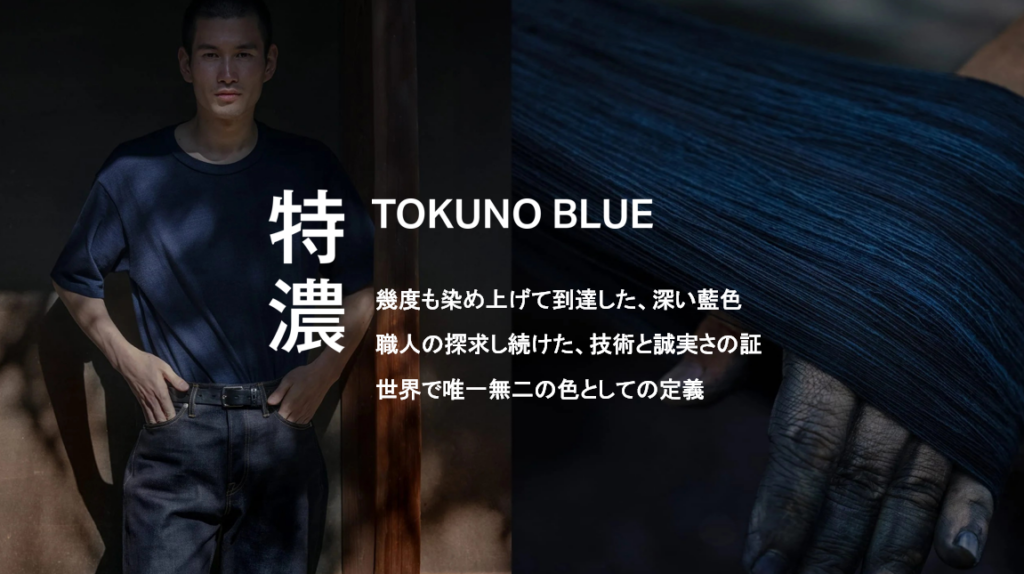 その象徴として、全てのラインアップにブランドのアイデンティティである「特濃」を採用。漆黒に近い深い藍色は、職人による至高の手仕事と日本の美意識が凝縮された、時間と共に完成していく芸術とも言える存在だ。この「育てる文化」への共感は、今や世界中で強いブランドロイヤリティを生み出している。